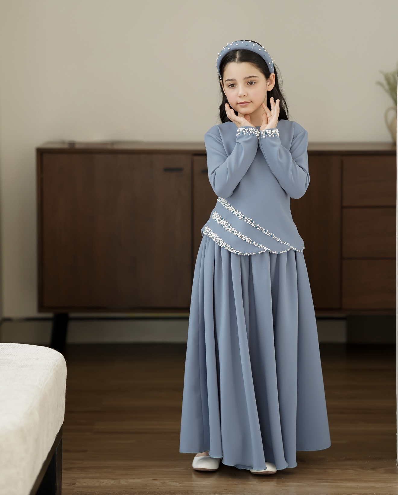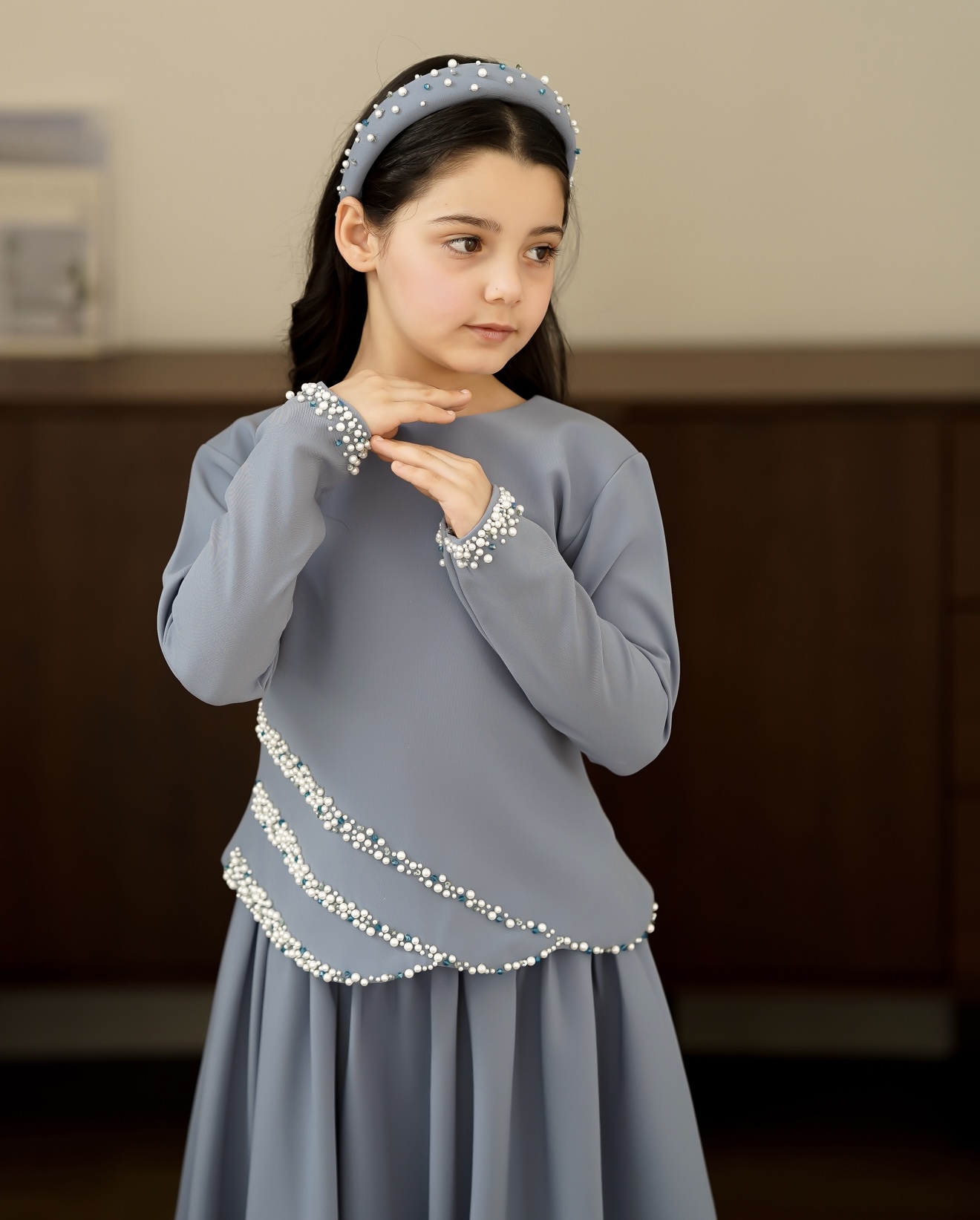 تنورة وقميص اللؤلؤ الناعم